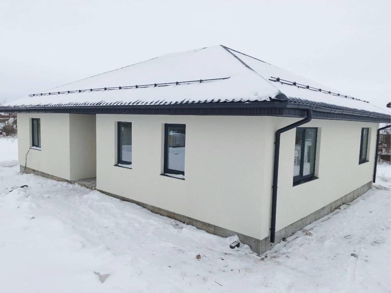 Декоративная штукатурка снаружи дома с нанесением грунтовки